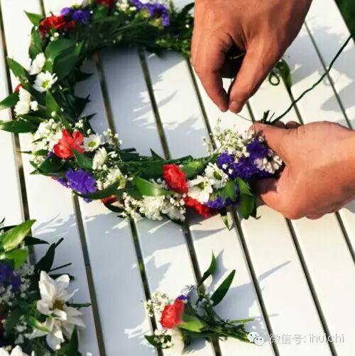 你需要花环来制作仲夏节花柱,剩余的可以戴在头上。用铁丝做一个环,比头部稍大。用钢丝钳固定住各种人造花的花茎以及多种人造植物的叶子。做一些小花束,用线或钓鱼线逐个固定到铁丝环上。用完后,可以将花冠存放起来,留到来年再用!