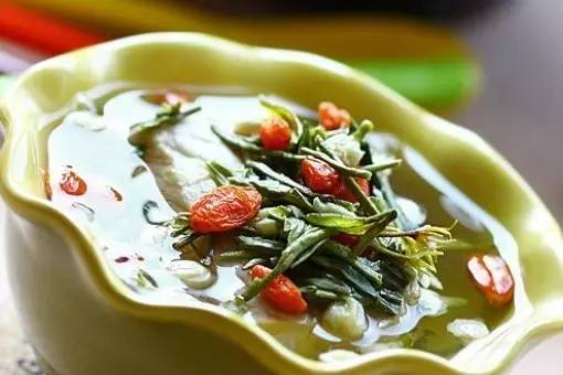 枸杞甘补平和,质润多液,可益精补血明目,润肺止咳。绿茶所含有的茶多酚,能抑制自由基,是有效的抗自由基因子。清香的茉莉加入茶的甘香,整道汤品清新不腻人,补而不燥,做法简单,是不错的夏季养生汤水。