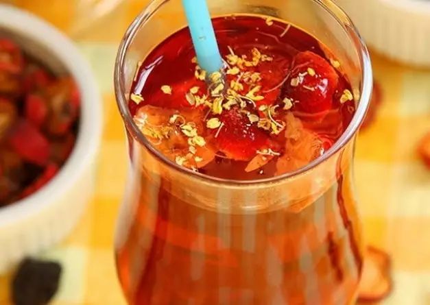 乌梅6粒、山楂10g、洛神花5g、甘草3片、冰糖按自己口味加、水1升-2升、干桂花适量