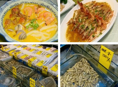店里海鲜的来源很讲究,每天供应的五十余种海鲜都是当天采购的。到店的海鲜被店家用盐度比例为16度左右、和海水相近的清水来短期饲养,保证晚上客人吃到的海鲜是鲜活的。各种海鲜的价位比菜市场里价格仅仅略高一点。最受欢迎的招牌菜是汇集了虾、蟹、蛤蜊等海鲜的海鲜面疙瘩,海鲜的味道鲜美,面疙瘩很有嚼劲。