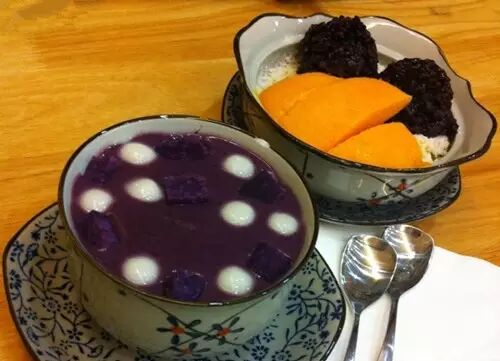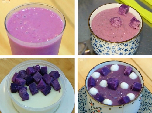 店里的紫薯甜品相当丰富,适合不同口味的食客。紫薯奶昔清凉解暑,燥热的时候喝上一杯非常惬意。紫薯双皮奶奶香浓郁,还有紫薯本身的甜香混合在一起。而最具代表的紫薯甜品是紫薯小丸子。制作的时候先将煮熟的紫薯切块,然后和奶制品一起放到料理机里打碎。软糯、爽滑,又充满紫薯原香的口味让人一试难忘。