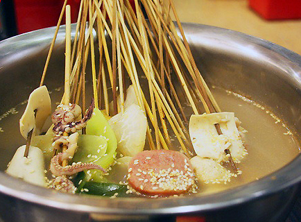 诱人的色泽和酸辣的口感就是韩式火锅的一大特点。加上芝士,汤底更加鲜香浓郁,还有拉丝的感觉。另外一大特色是火锅中的年糕。紫色的紫薯年糕,黄色的南瓜年糕,白色的芝士年糕。作为创新的韩式火锅,菜量的品种上不亚于传统的中式火锅,一共有15种菜品。汤底用骨头和海鲜熬制了十几个小时。