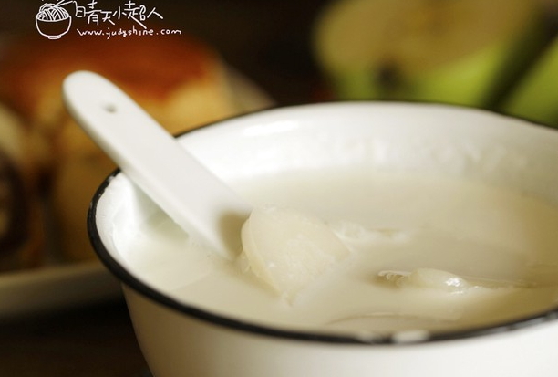 6、加入适量牛奶,让粥变成奶白色,吃起来有淡淡奶香味,再根据口味加入冰糖。晾至温热就好,白米粥里加牛奶真的很好喝;