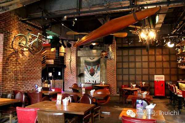 门口的三张海报,彰显着老板勇于冒险的个性。而门口大玻璃橱里满满的漫威人物模型可是老板私藏的宝物!推开大门,美式复古风更是扑面而来!棒球棒,自行车,美式橄榄球,拳击沙袋,旧海报,甚至飞机、划艇……懂经的顾客不免感叹穿越到了美国禁酒令时期。