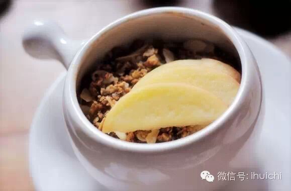 祝大厨介绍,他们会根据顾客的反映不断调整菜单。香脆苹果派,就是最近新推出的哦!新鲜的苹果块,配上高温烘烤得脆脆的杏仁片、麦片和核桃,谷物颗粒在口中迸发,咀嚼的满足感加上清甜的苹果香气,令人回味无穷!
