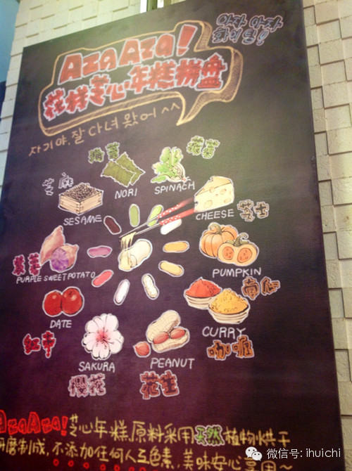 老板娘说,高中时代的经典韩剧【浪漫满屋】陪伴她和“殷童鞋”度过了一段浪漫时光。他们被智恩和英宰互相打气的那一句“Aza Aza Fighting!”深深感染,而这也成为了今天Aza Aza整个设计理念的最初来源。她说:“Aza Aza依稀就是我16岁时想象中家的样子——招牌的红色小木屋,纯手绘墙纸,可爱的黑板,定制款的居家范儿餐具,和一笔一划画出的菜单。”