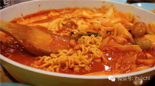 春川铁板烤肉熟的特别快,伴随秘制酱料把米饭和辛拉面加到里面抄食,石锅拌饭的感觉就出来了,辛拉面也变得香脆可口,所有食物跟着铁板一起被烫得“滋滋”作响。把火关掉后,年糕像变成另一道菜一样。粘稠的酱汁都和芝士在口中结合,滋味妙不可言。