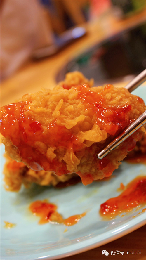 另外,汇吃小编再推荐一下这里的炸鸡。鲜嫩多汁,金黄酥脆,再淋上番茄汁,赞的不得了。据说还有一种是蜂蜜芥末汁更好吃。亲们,还在等什么?快去尝尝吧!