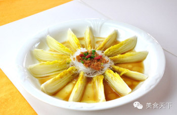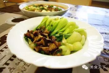 小菜:时间到起锅,用锅里的鸡汁来炒菜心,除了油,什么材料都别加了,真是好鲜。