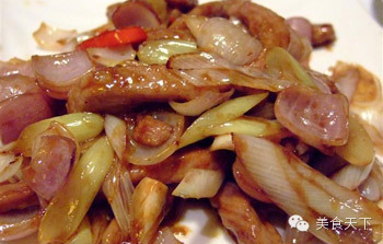 买牛肉时请肉铺师傅加工成牛肉丝(本人没什么刀工,切不细又费时间)350g左右。一个洋葱剥皮后切成洋葱丝。油锅热后加姜丝,牛肉丝炒到半熟(1分钟左右),加入洋葱丝,再翻炒个1分钟,加入少量的糖和生抽 (口味重的朋友可以加五香粉或干辣椒),再翻炒个一分钟就可装盘。