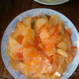 土豆切片(切片还是挺容易的),锅里多倒些油(油多是关键哦),土豆片下锅不停的翻炒,炒到土豆片粘粘糊糊的,放醋、盐和白糖搅拌均匀了就可以出锅了,很下饭的。