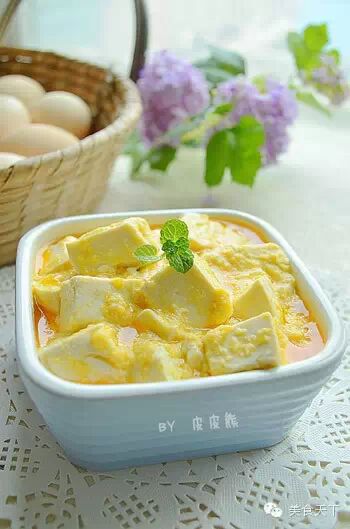 熟咸鸭蛋一个,蛋黄和清分开。开小火煸蛋黄,出很多很多小泡的时候放内脂豆腐一盒,用铲子铲碎,稍微炒一下放水。锅开2、3分后把清也弄碎放里边勾芡。好了,还很鲜美。