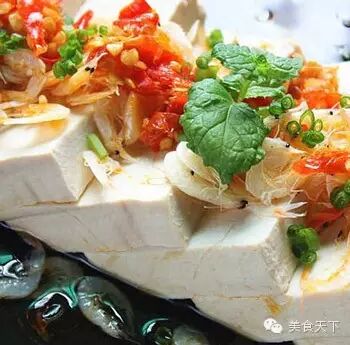 豆腐切块,上面撒上虾米,煮饭时一起放电饭煲,饭好虾米香也飘出来了,放点酱油,好吃。