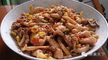 首先下点油,倒菇,翻炒后会出水,把菇捞起,此时已差不多熟。