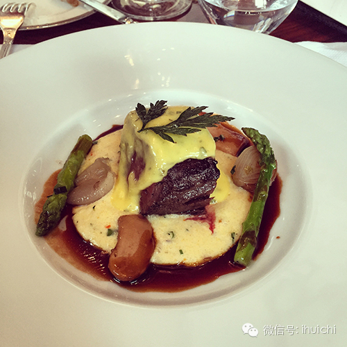 Wagyu(和牛)被誉为是世界上最安全的牛肉。这道牛肉烤得恰到好处,香而不腻、入口即化的感觉,让人不忍停切。蟹味玉米糊美味难挡,蟹肉的清香加上玉米的鲜甜和原汁原味,展现了主厨的良苦用心。中式食材与西式料理巧妙结合,伴随以芦笋、香草蛋黄酱的点缀,绝对是奇妙的舌尖之旅。