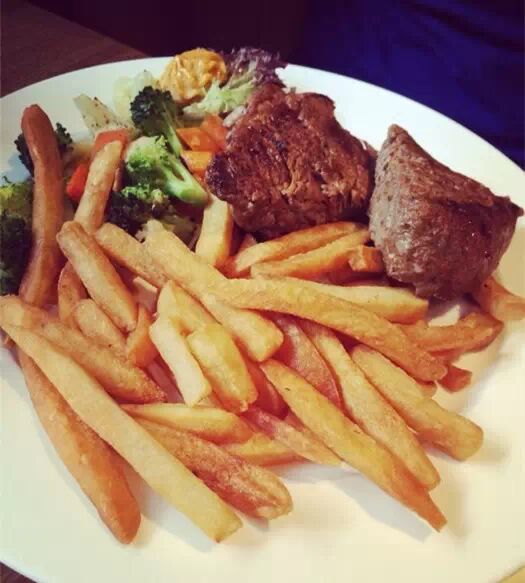 非常有名的全球连锁牛排餐厅,如果点牛排的话套餐比较划算。菲力牛排确实不错,不用酱汁,单点点盐最好吃。还有炭烤肋眼牛排超好大一块,吃了很满足,绝对是吐血推荐款牛排!需要补充的是这家店的细节上也很注意,上来盘子滚烫的,服务态度也很体贴,去试了就知道哦!