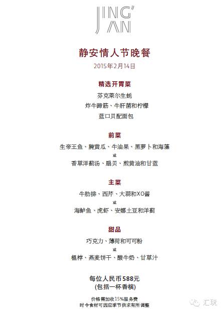 - 于静安餐厅享用4道菜情人节晚餐套餐