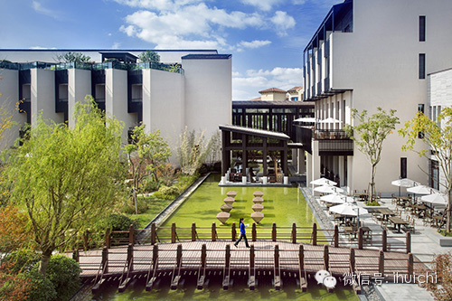崇明金茂凯悦酒店以现代中式风格为整体设计基调,与周边生态环境自然融合。由独栋花园式别墅和酒店式公寓组成的六栋主体建筑,通过窗明几净的木制中式连廊相衔接,辅以小桥流水的精巧花园,所有住客既能感受到明快洗练的摩登气息,又充盈着满满的海派审美元素。