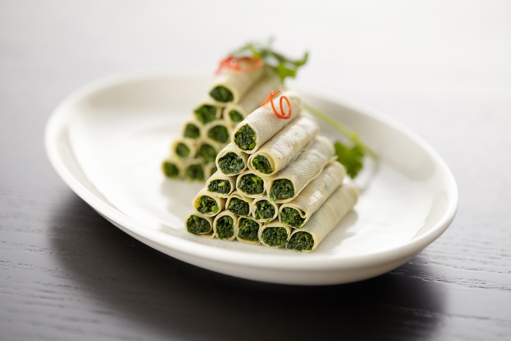 崇明野荠菜自然清香清爽宜人,以最简单的烹饪手法保持了其原有的香味。碧绿清香的荠菜包裹在崇明土制的百叶下,融合了豆制品自然香味,多层次的口感,交织其中。