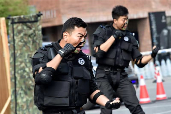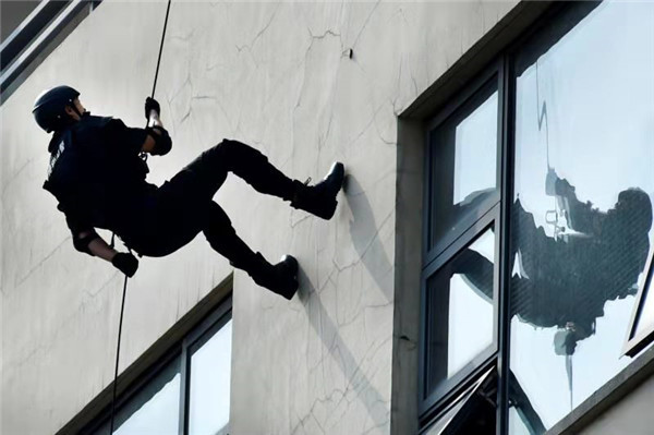 在枪支战术演练中,特警突击小组根据不同处置环境,不断变换各种作战队形,同时熟练操作多种警用枪械;高空索降要求特警队员凭借绳索控制定位,用悬停的方法观察警情及突入攻坚。