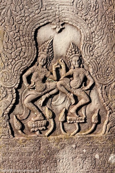 石壁上的仙女浮雕体态婀娜,头冠华丽,每一尊的动作,衣着皆不相同,面上带着惑人的微笑,西方人称之为东方的蒙娜丽莎。浮光中翩翩起舞,玉臂凝香,一抹飘渺的春意殷殷缭绕,和着岁月的未知旋律,风韵流转。