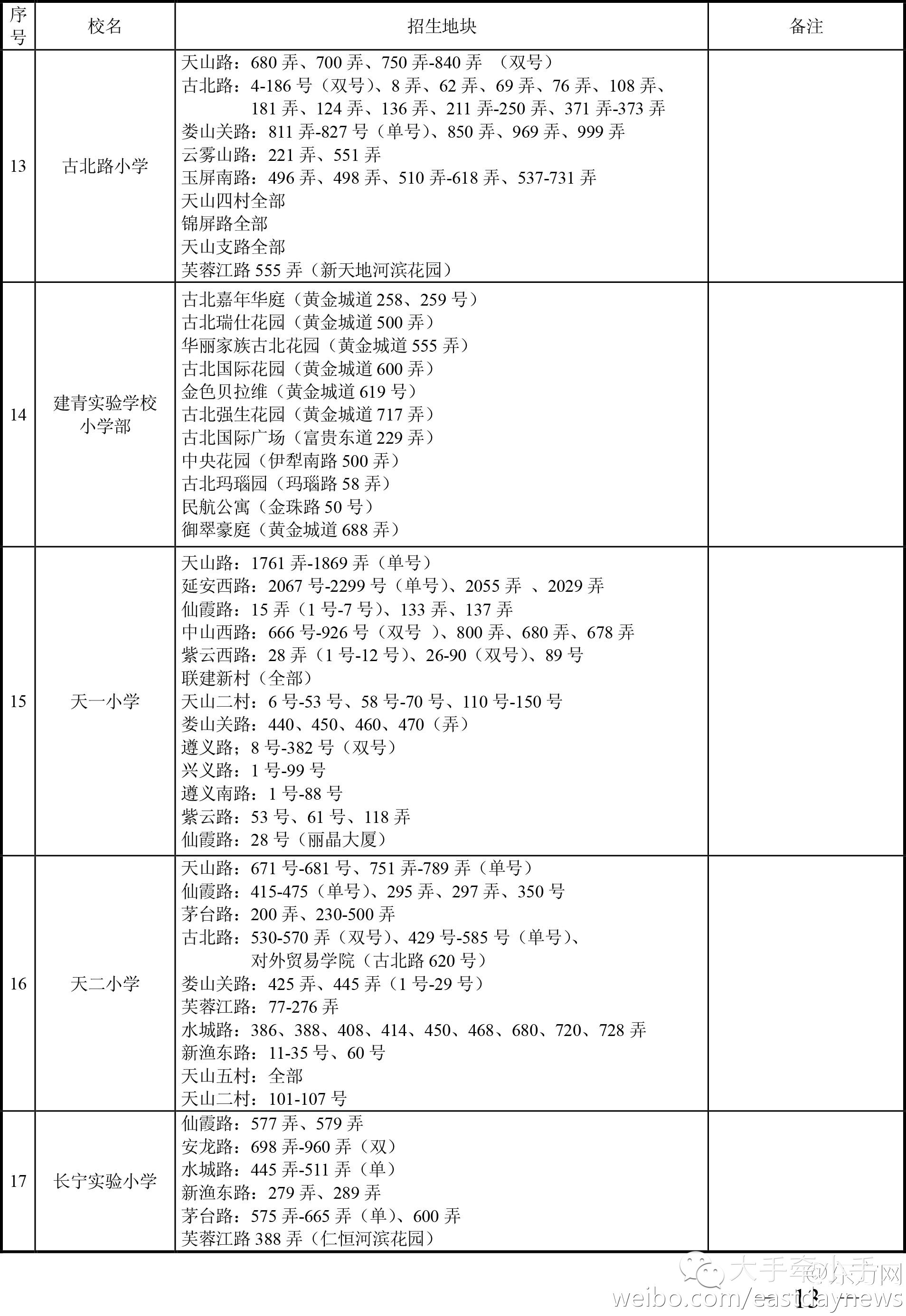 由于该区表格比较大,各位爸爸妈妈可以登录www.shrxbm.com 查看,也可以点击最下面的 阅读原文 到网盘进行下载。