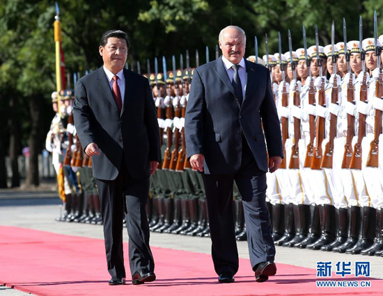 2013年7月16日,国家主席习近平在北京人民大会堂同白俄罗斯总统卢卡申科举行会谈。这是会谈前,习近平在人民大会堂东门外广场为卢卡申科举行欢迎仪式。新华社记者 庞兴雷 摄(资料图)