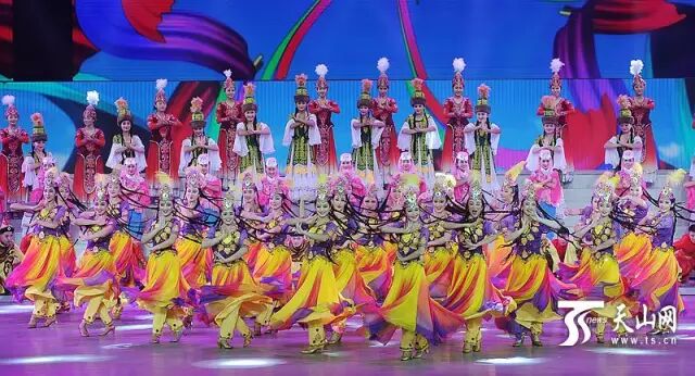 把握新机遇,再创新辉煌。歌舞《丝路彩虹》、情景诗朗诵《点赞!为洒满爱的大地》、合唱《永远手牵手》等节目,展现了站在新的历史起点上,新疆建设丝绸之路经济带核心区的脚步铿锵有力、前景无限美好。在这片英雄辈出的土地上,团结、奋斗、爱国、感恩的时代精神在每个新疆儿女心中埋下希望的种子,汇聚起奋力前行的力量……