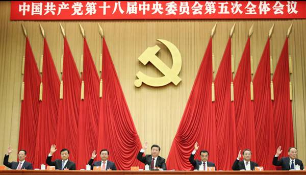 10月29日,中国共产党第十八届中央委员会第五次全体会议胜利闭幕。来源:新华网