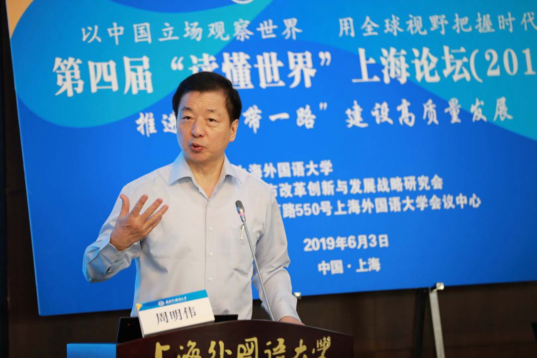 【导读】以“加快国际金融中心建设,推动经济高质量发展”为主题的第十一届陆家嘴论坛于今天(13日)上午开幕,论坛上宣布了科创板开板。国务院副总理刘鹤在主旨演讲中进一步坚定了加快推进金融改革开放稳定的信心,为做好当前资本市场工作,推动股票市场特别是科创板健康发展,并就加快上海国际金融中心建设提出明确要求。提升金融综合服务能力助力“一带一路”建设,在日前由上海外国语大学、上海市改革创新与发展战略研究会联合举办的第四届“读懂世界”上海论坛上,周明伟、杨洁勉、黄仁伟、姜锋、李安方等众多学者从不同角度谈了对推进“一带一路”高质量发展的理解,为听众带来了一场学术与思想的盛宴。今分享周明伟的主旨演讲。
