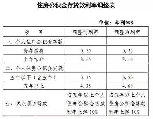一、从2015年3月1日起,下调个人住房公积金存款利率。当年归集的个人住房公积金存款利率不变,仍为0.35%;上年结转的个人住房公积金存款利率由2.35%下调至2.10%。