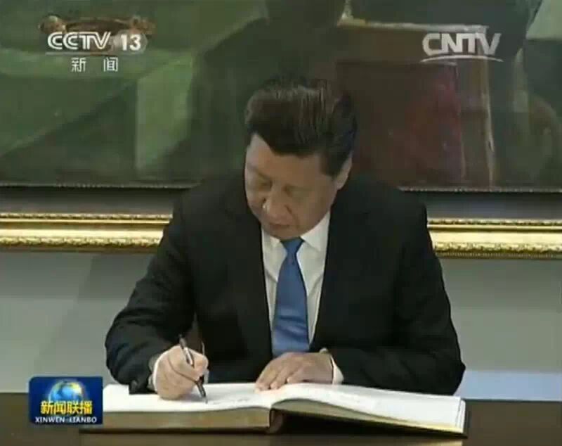 会见前,习近平同卢卡申科共同参观了卫国战争历史博物馆。当习近平来到博物馆时,卢卡申科亲自来到博物馆门口迎接。中白两国青年学生在博物馆前挥舞两国国旗,欢迎习近平。博物馆陈设超过14万件藏品,集中反映了白俄罗斯军民同仇敌忾、保家卫国、抗击法西斯侵略者的英勇历史。博物馆内还设有“白俄罗斯与中国——战火中结下的兄弟情谊”特别展区,通过大量照片和实物,集中展示了日本法西斯侵略者的野蛮和中国军民抗日战争的英勇事迹。习近平认真听取讲解,并在纪念薄上题词“铭记历史,维护和平”。