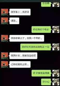 【画面三:我爸就是你爸,记得给我妈上坟】一名天津消防战士和朋友昨晚的微信对话截图在网上流传:“刚子死了,牺牲了。我在车上,去塘沽。我回不来,我爸就是你爸,记得给我妈上坟。”