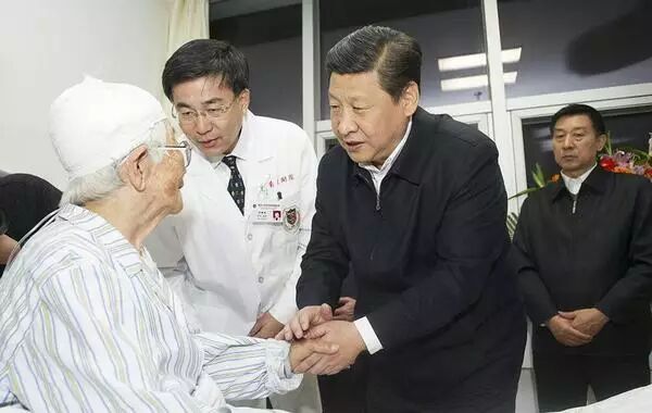 图为:2013年11月24日下午,习近平抵达青岛,去医院看望慰问爆燃事故中的伤者。