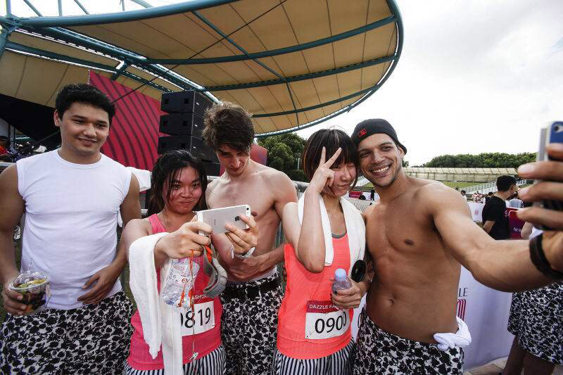 不过,就算是作为主角的妹纸们也会有被迷倒的时刻。赛后的欢庆派对上,不仅有“诺心”蛋糕、依云水相赠,赛事组委会还特地请来了身材性感的男模,手持拍立得,为大家留下一张特别的参赛影像作为留念。