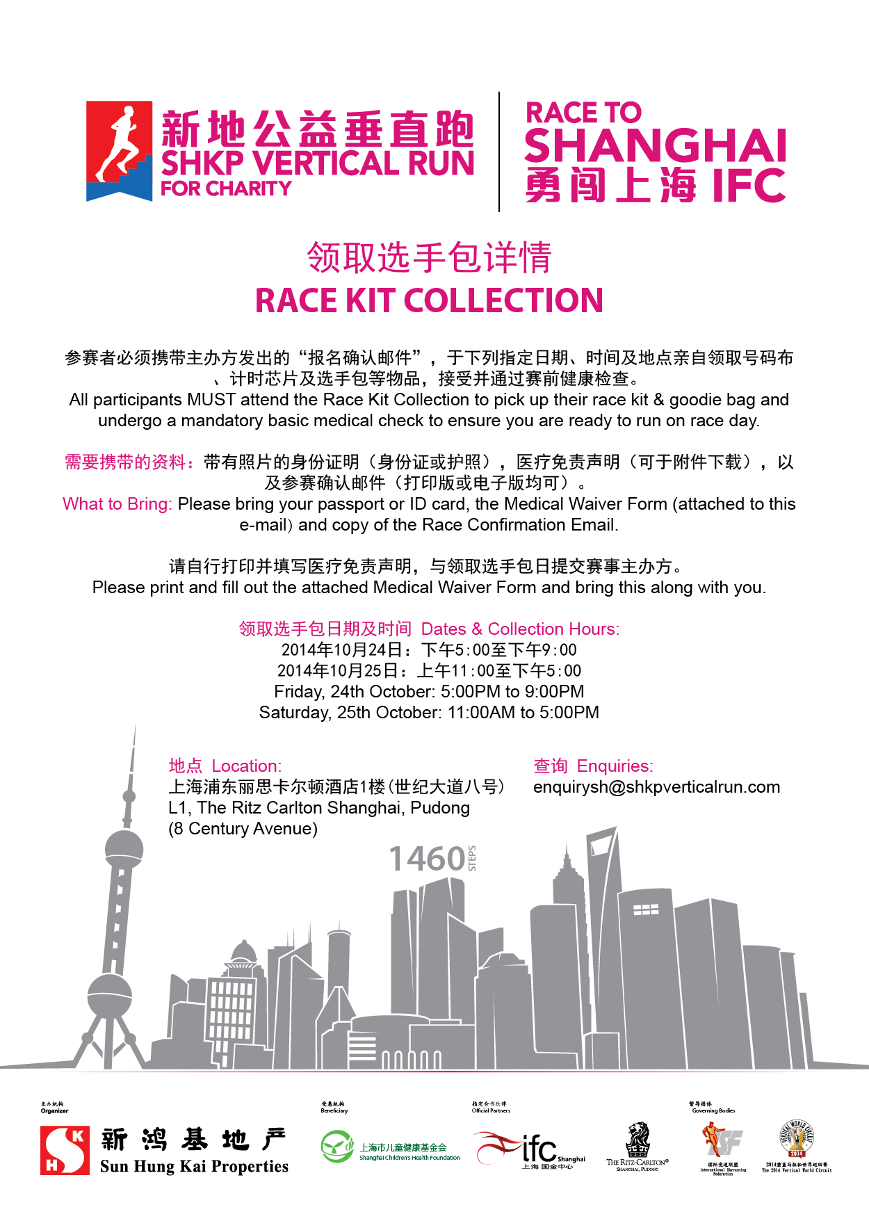 本人身份证或护照、参赛确认邮件(电子版、打印版均可)、医疗免责声明(已群发邮件,请下载后填写)