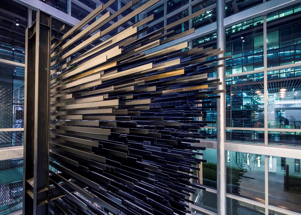 赞助商诚意满满,会议室自然“刘翔”味儿十足。一层大厅内,安放着由2774铜质跨栏横杆组成的大型装置艺术,代表着“飞人”最重要成绩12秒88、12秒91、12秒95的三根横杆被涂成金色,以铭记经典瞬间。