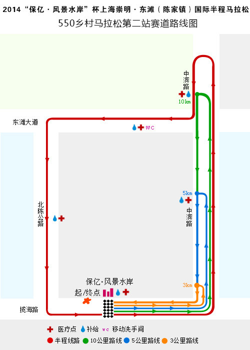 临时厕所:在赛事起/终点,15公里处设置临时厕所;