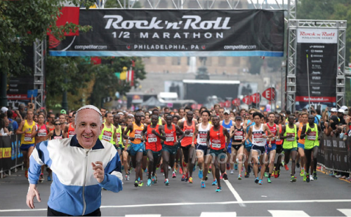 在这则爆炸性消息公布后,费城摇滚半马赛事官网的简介上就加上了,“教皇即将参赛。”