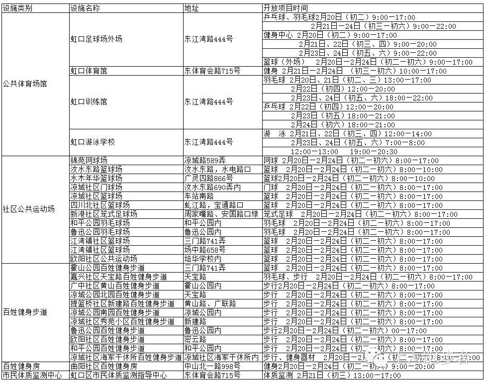 据悉,春节假日期间,本市600余家体育场馆将继续开放。为此,小跑特地为大家制作了各区县的场馆开放时间表,供小伙伴们参考哦!