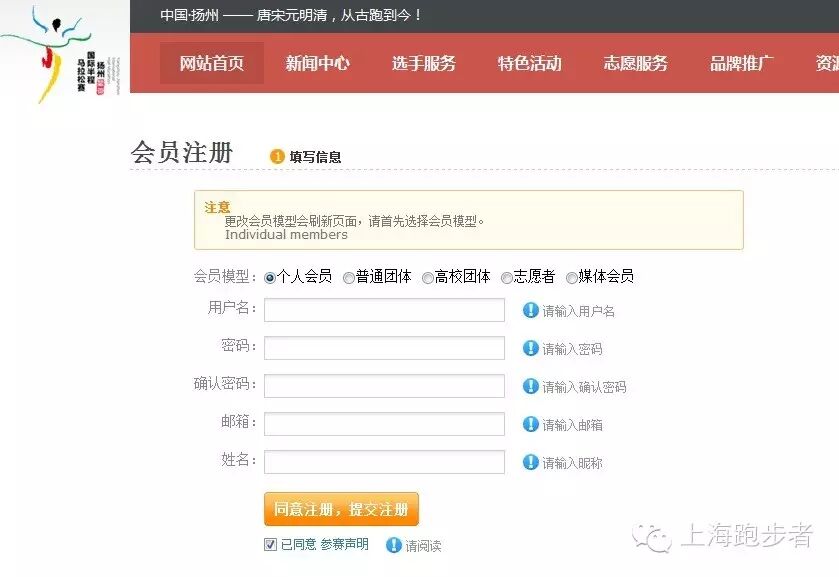 2.为了减少报名时的步骤,不妨先提前进行会员注册,注册分为个人会员、普通团体、高校团体、志愿者和媒体会员五类。