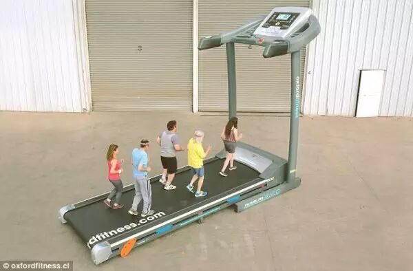 这台巨型跑步机高5米,宽3米,长6米,由智利专门销售健身器械的Oxford Fitness公司设计制造。据说设计的初衷是为了缓解健身房里跑步机过于紧张的情况。