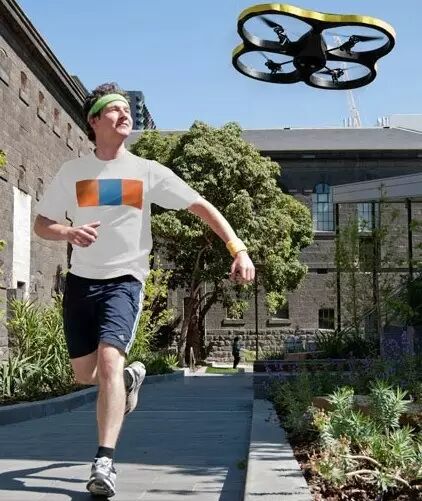 这款机器人由Geek党热捧的四轴飞行器改装而来。通过编程将它设置为追随一件黄绿相间的衣服,它就会用身上的摄像投去跟踪这件衣服,并盘旋在3.5英尺的上空。一旦捕捉不到,就会自动着陆。