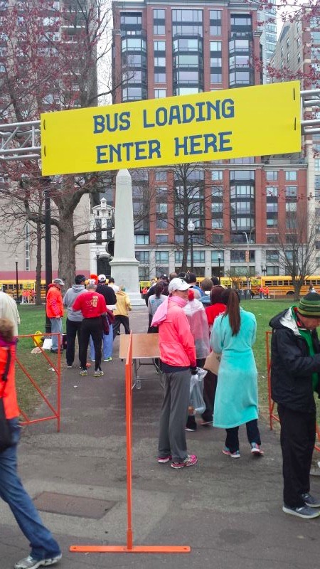 比赛日早晨,存包要按波分区,乘接驳车要按波分时间。不断有人进来,不断有人出去,能容纳5万人的波士顿公共绿地,感觉只有5000人。3个安检上车通道最多每支队伍20来个人排队。