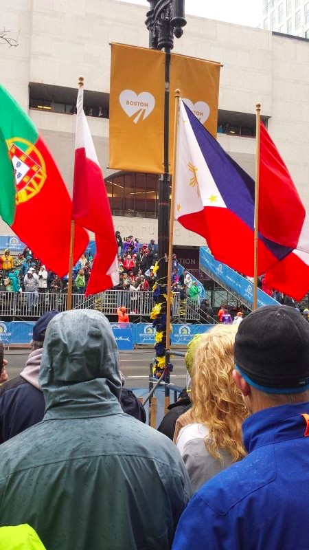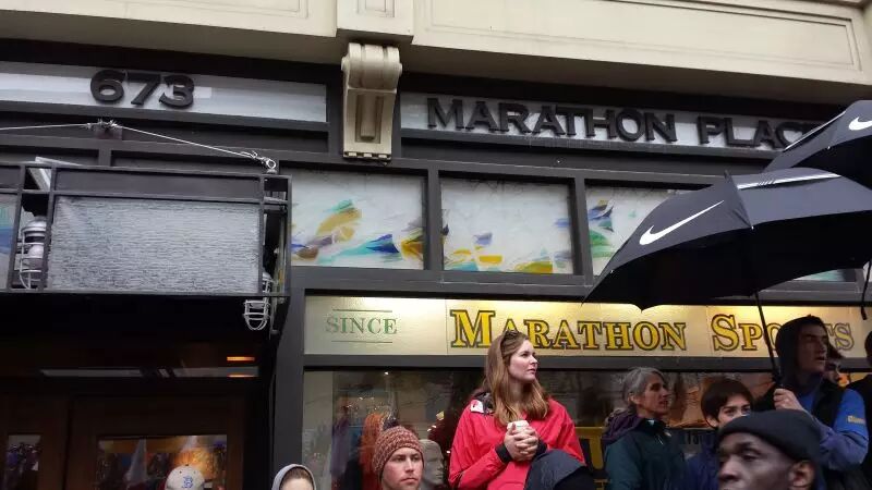 为了让“马上马波士顿跑团”的团友,在冲线前看见亲人、听见来自同胞的欢呼,我特意站在终点前的马拉松用品商店——熟悉波马的朋友就知道,这里就是2013年波士顿爆炸案第一次爆炸的现场。