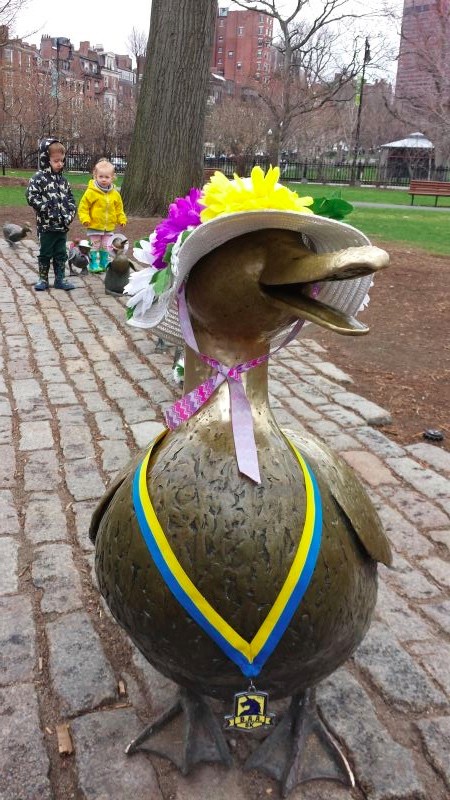 用我们“马上马波士顿跑团”一位跑友的话说,将来骨灰都不要,把这块奖牌放骨灰盒就行了。独角兽,比都教授更受欢迎啊!看看,公园里的鸭妈妈都有了,你还等什么?