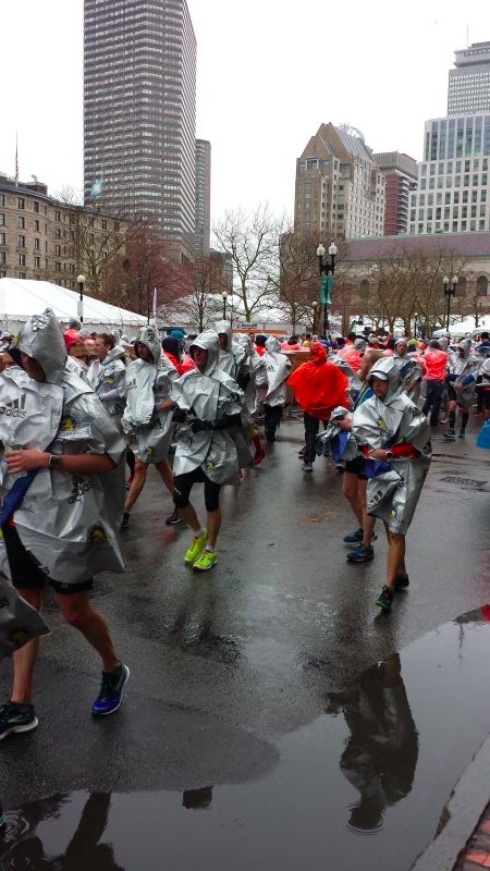 尤其昨天这么冷的天,大伙儿可是把压箱底的睡衣睡裤都拿出来了,圣诞老人、米妮、波士顿红袜……穿什么图案的都有,就像跑步之前先开睡衣派对似的。到了地点,大家就开始脱、开始扔,还好主办方早就料到有此一招,准备了足够多的存储袋,全部打包运走。这里也特别提醒国内跑友,以后来波马,千万不要以为就近、住起点附近啊!