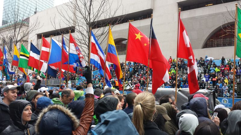 再说波士顿马拉松的各种排队。一场波士顿马拉松,要发7枪。轮椅组、女种子、男种子,然后给普通跑友按成绩分波次,每一波还分排。