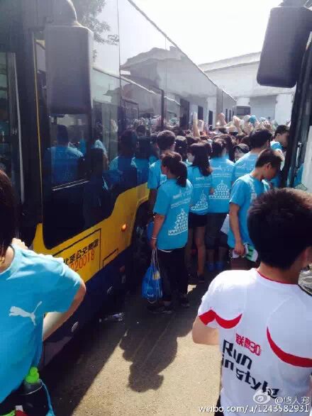 据微博网友@悠人宠反映,由于存包处没有按照号码分段存,导致选手取包时场面混乱,最后竟然是由部分参赛选手爬上车后分发。