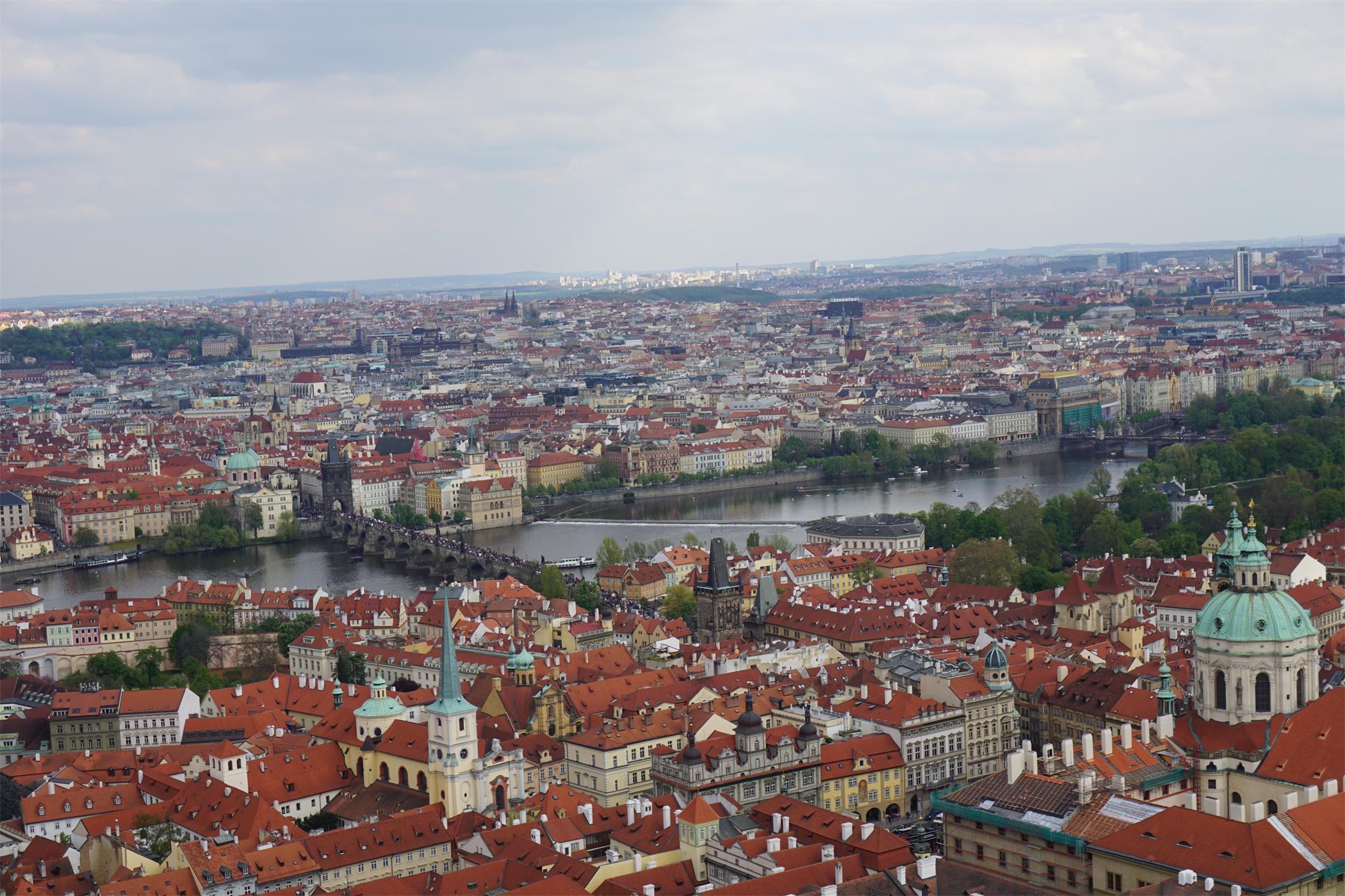 从城市高处眺望布拉格马拉松的赛道。